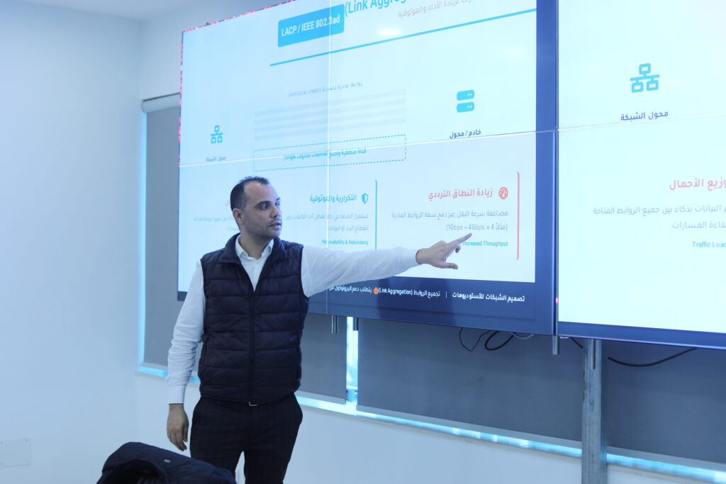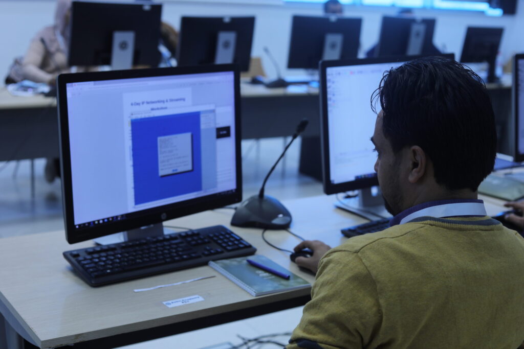 وتهدف الدورة، الممتدة على أربعة أيام، إلى تعزيز كفاءات المشاركين في تصميم وإدارة الشبكات داخل الاستوديوهات الإذاعية والتلفزيونية، من خلال مزيج من العروض النظرية والتطبيقات العملية، ويؤطرها الخبير المهندس عبدالرحمن ولها من تونس.